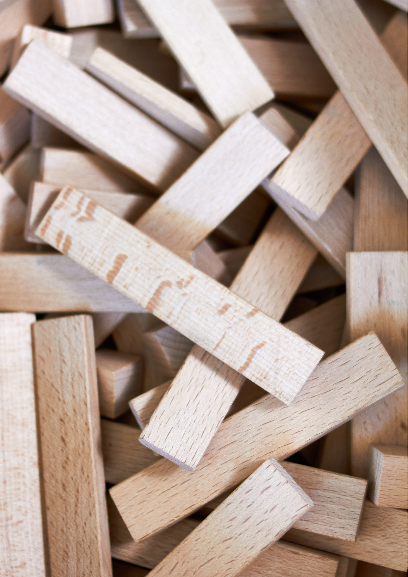 Children love to create things! In this area, they can experiment with different materials, build, construct and playfully explore the basics of statics and mathematics.